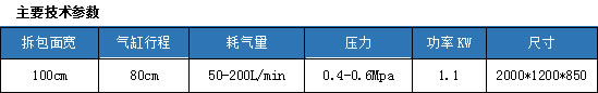 產(chǎn)品結(jié)構(gòu):CB-1000型拆包臺(tái)主要有提升氣缸、面板、機(jī)架、接塵斗及提升開關(guān)手柄組成。